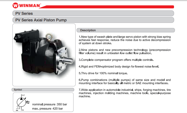 • WINMAN HİDROLİK DEĞİŞKEN DEBİLİ PALETLİ POMPALAR